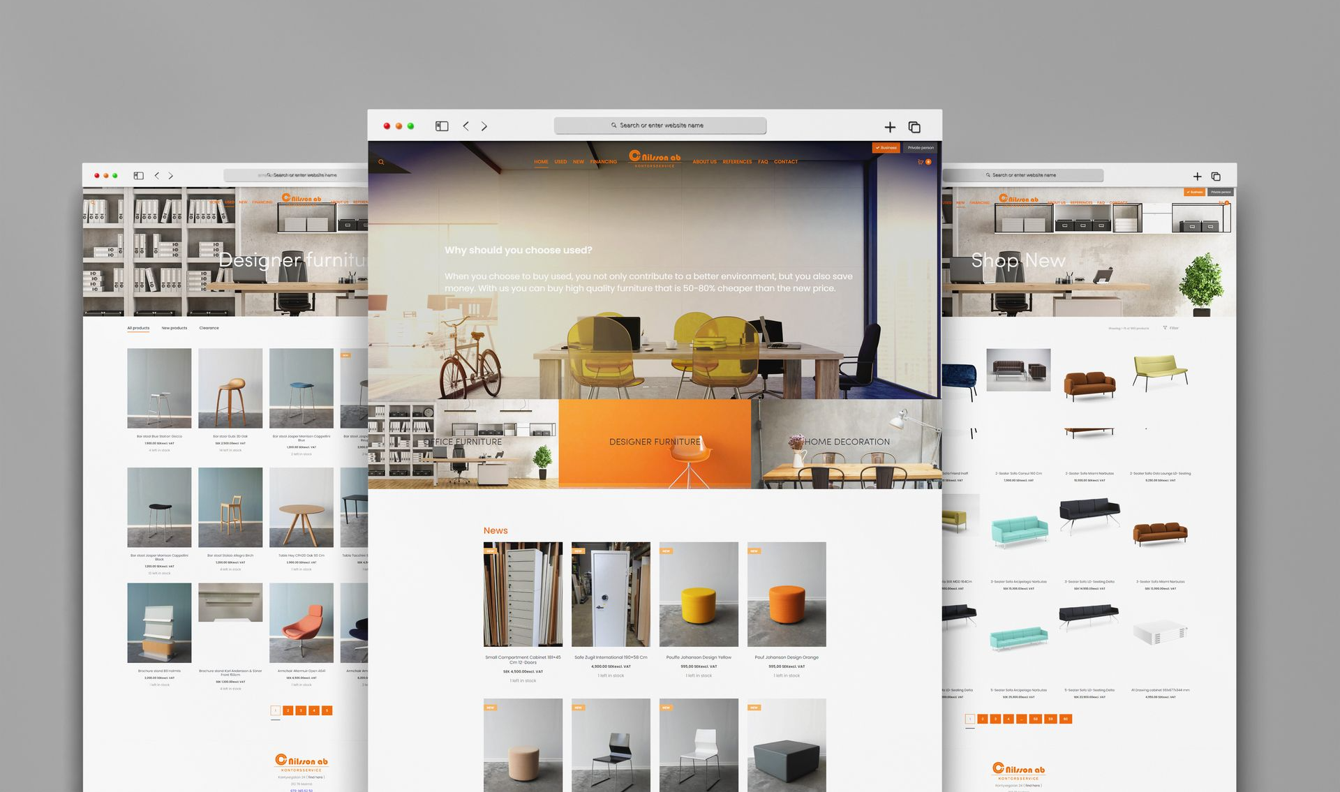 The Modern Office Solutions project involved a complete redesign of C Nilsson’s website and the integration of a sophisticated e-commerce platform. The shop is now divided into two distinct sections: Used Furniture and New Furniture, offering customers a seamless way to browse and shop for high-quality office furniture. The website’s design emphasizes clarity, ease of use, and an enhanced user experience with modern aesthetics. It features a dynamic catalog, real-time inventory management, secure payment systems, and a responsive mobile-friendly layout.